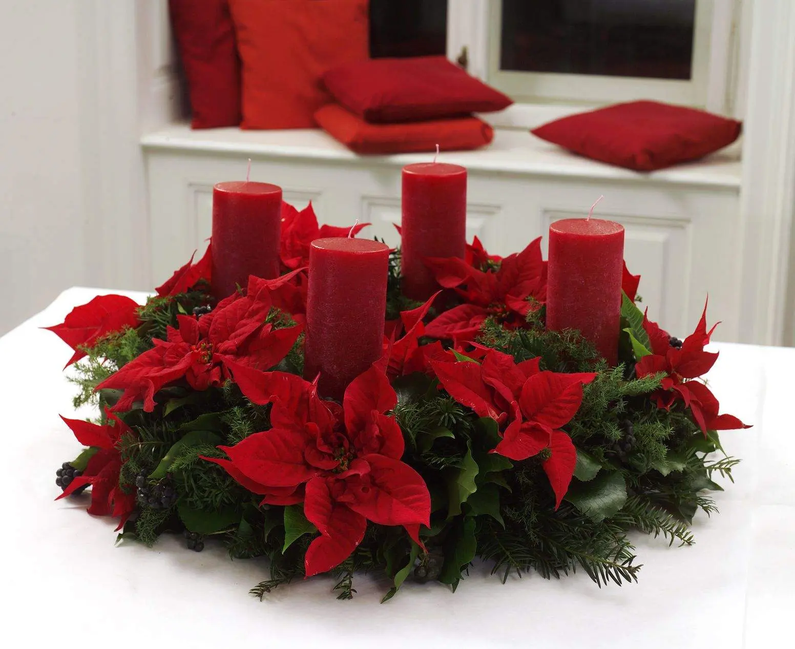 Пуансетия станет превосходным украшением вашего празднечного стола, подоконника, рабочего места, или дома/офиса в целом. Наличие её в доме предвещает праздничное настроение и создаёт атмосферу Рождества. |